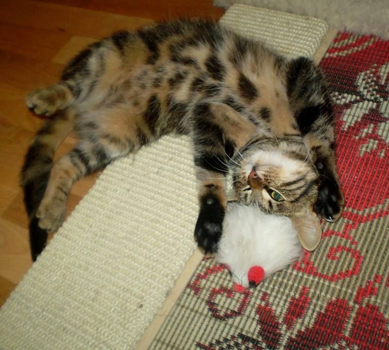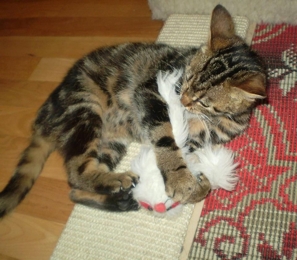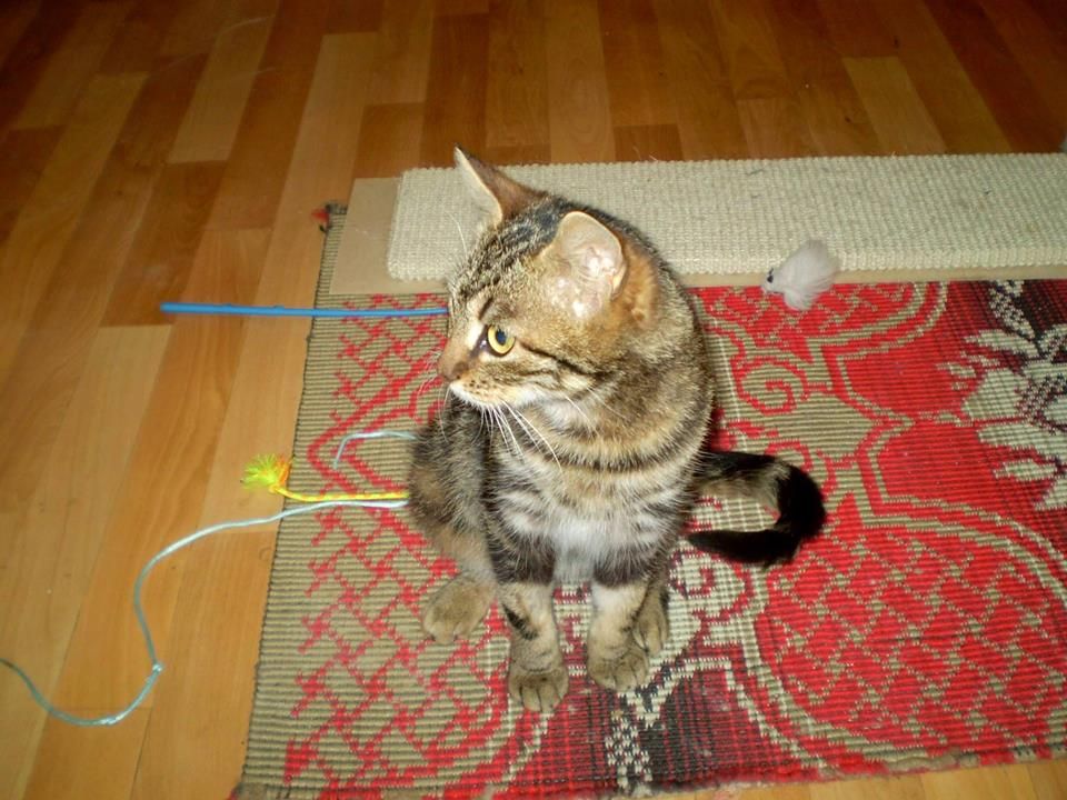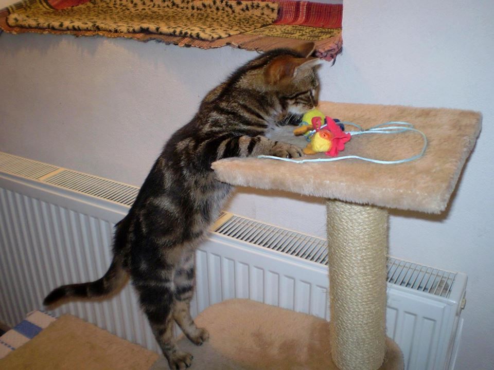 Elzička sa rýchlo uvoľnila a ukázala kompletný mačiatkovský program- pradenie, šantenie, lezenie, hryzkanie, hranie, túlenie, vraždenie plyšákov. Elza je skoro bengálka, má krásnu kresbu kožúška.